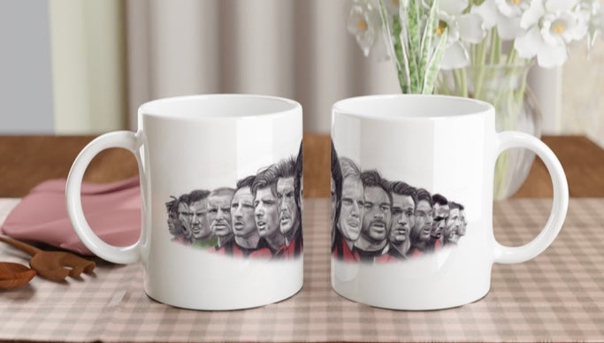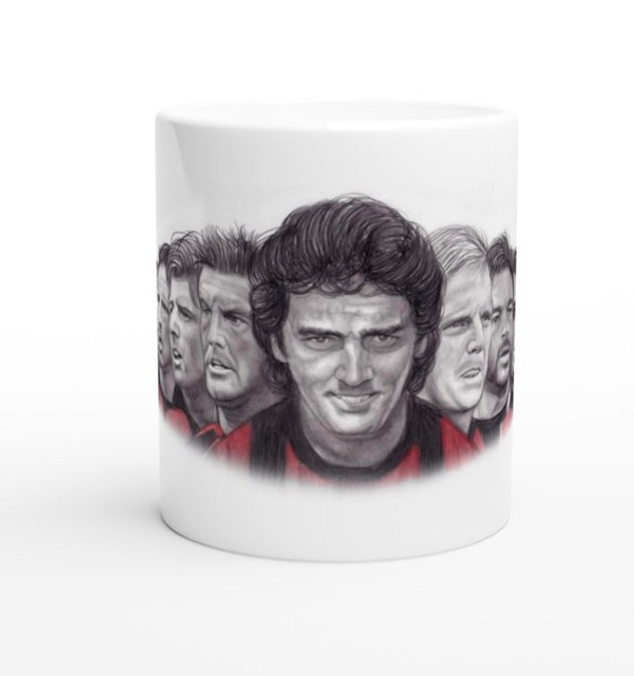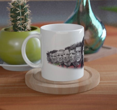 My drawing of 15 Bournemouth Legends printed on to an 11oz ceramic mug.