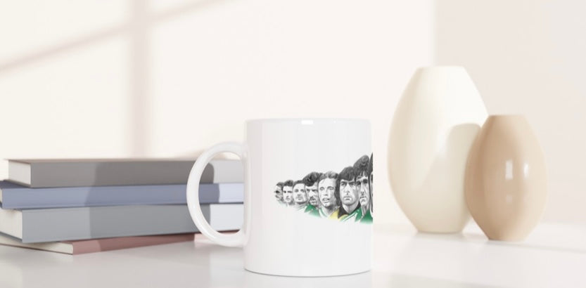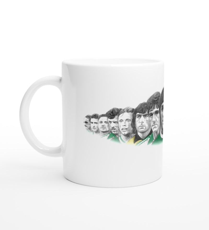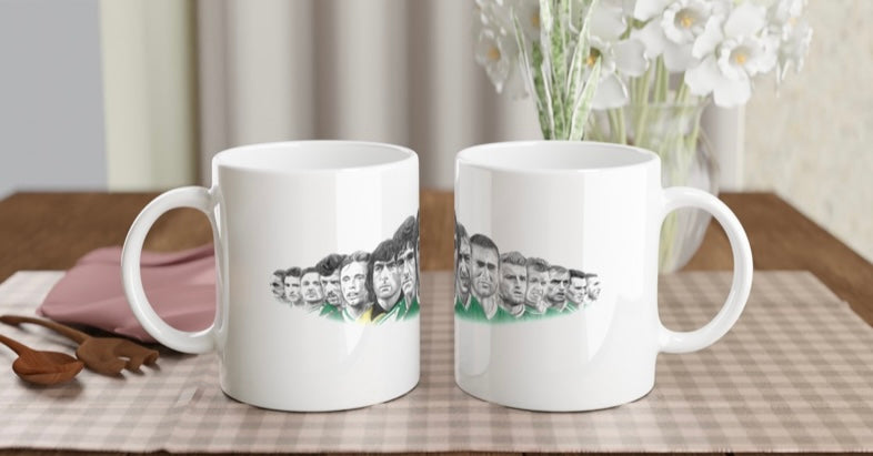 My drawing of 15 Northern Ireland Legends printed on to an 11oz ceramic mug.