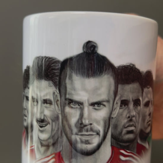 My drawing of 15 Wales Legends printed on to an 11oz ceramic mug.